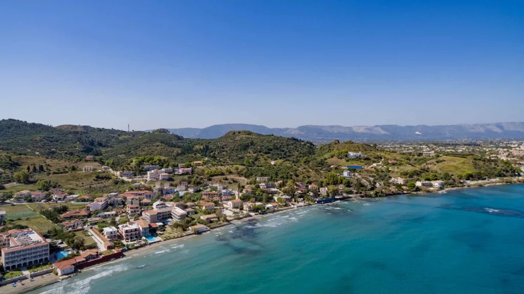 Kalamaki is approximately 4 km from Laganas, which is famous for its vibrant party scene. It’s close enough for visitors to enjoy the nightlife but far enough to keep its quieter, family-friendly atmosphere.